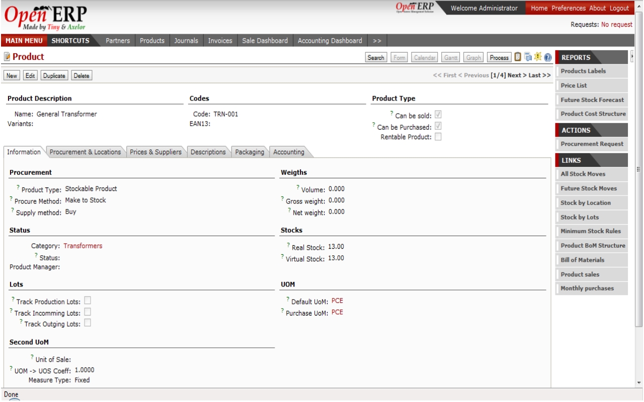 Bista Solutions Inc. - Open Source Applications Screen shots of Purchase Modules in Open ERP. -